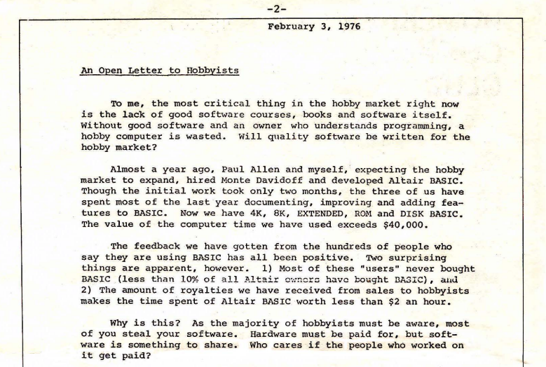 Hoy se celebra el 50º aniversario de un documento que dividió a la comunidad tecnológica: la 'Carta abierta a los aficionados' escrita por un joven Bill Gates. En ella, el cofundador de Microsoft criticaba a quienes compartían copias de su software sin pagar, lanzando una pregunta que marcaría una época: '¿Quién puede permitirse hacer un trabajo profesional a cambio de nada?'.